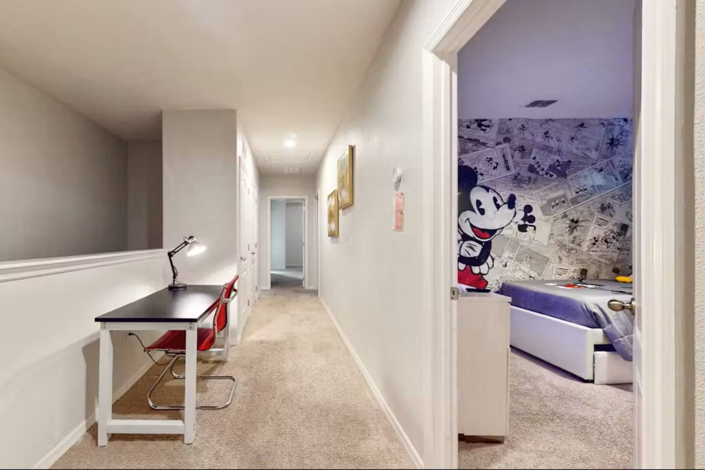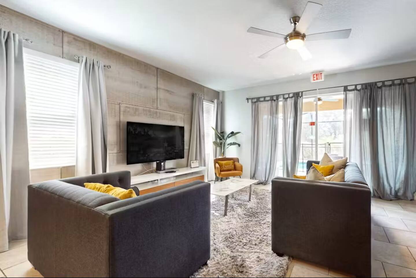 🏊♀️ Private screened pool (heat available for a fee) with outdoor dining, loungers & TVs throughout the house 🛏️ 5 spacious bedrooms, each with its own Smart TV, and tastefully decorated rooms: 🎬 Open-concept living w/ Smart TV for cozy movie nights Fully dedicated workspace to comfortable work from home 🍳 Fully equipped kitchen w/ seating for 10 indoors + lanai dining 🌴 Resort access: huge pool, splash park, gym, & more 📶 Free WiFi, 🧺 washer/dryer, linens & towels provided