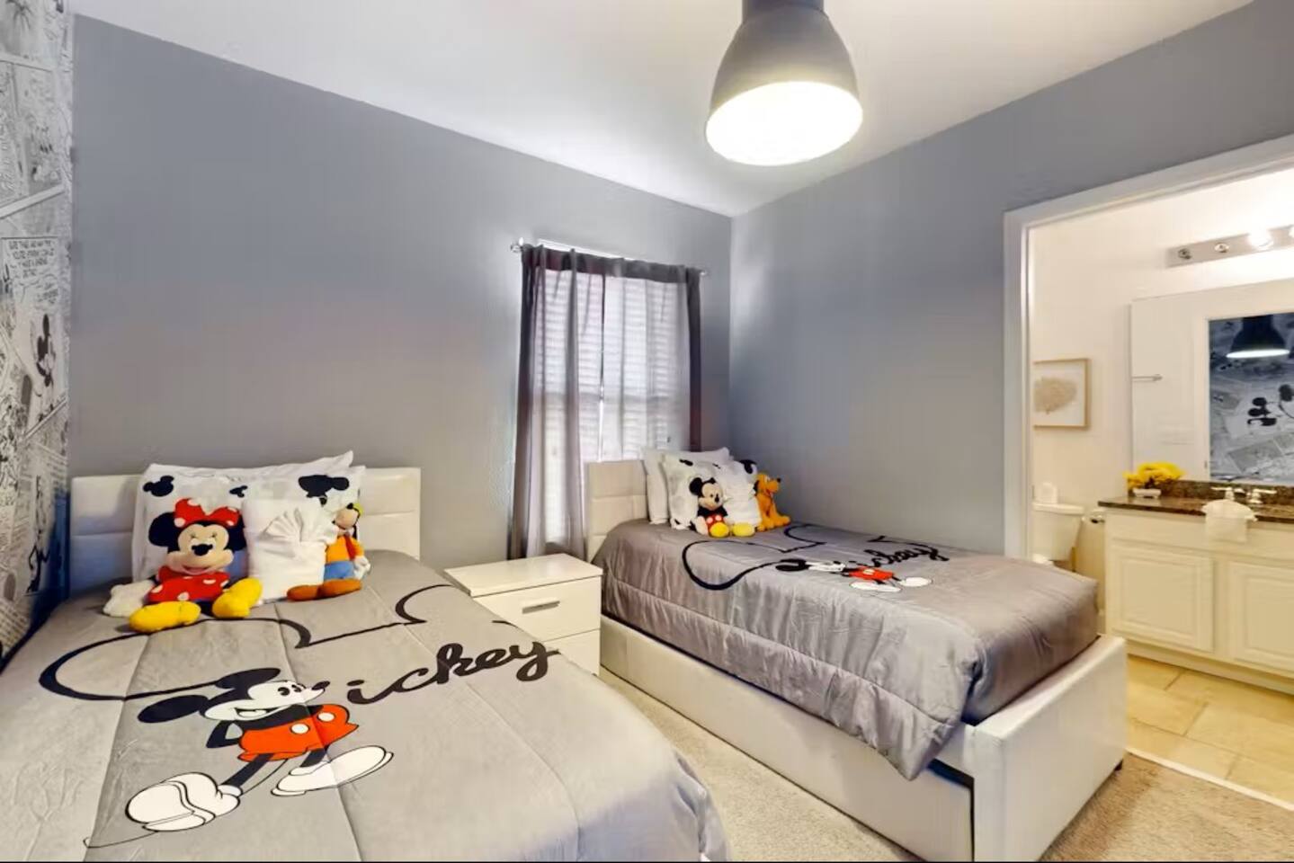 🛏️ Bedroom Layout ✨ 👑 King Suite 1 (Upstairs): King bed, ensuite bathroom & Smart TV 👑 King Suite 2 (Upstairs): King bed + Crib, ensuite bathroom & Smart TV & 🌟 Queen Suite 1 (Upstairs): Queen bed & Smart TV 🌙 Queen Suite 2 (Upstairs): Queen bed & Smart TV 💫 Twin Suite (Upstairs): 2 twin beds, 2 twin trundle beds ensuite bathroom & Smart TV ☀️ Step outside to your private screened pool & spa! Lounge in comfort with sun loungers, a dining table for six, and an outdoor TV for poolside fun. 💦 Pool heat optional