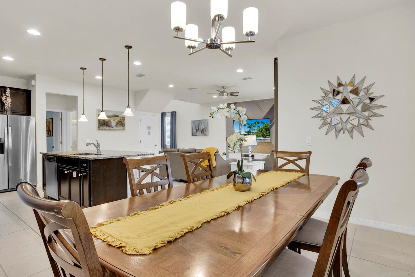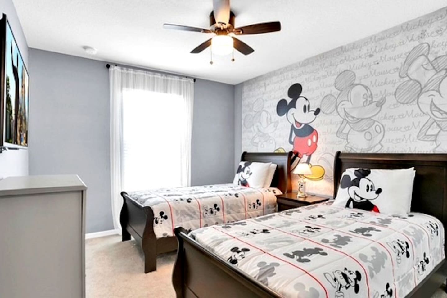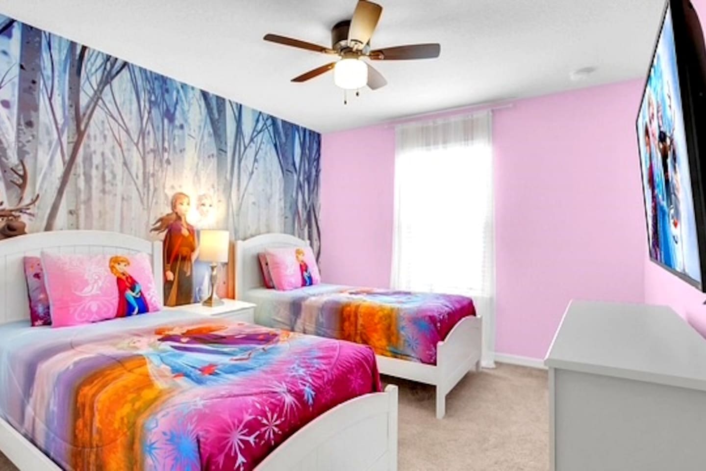 🏊♀️ Private screened pool + spa (heat available for a fee) with outdoor dining, loungers & Roku TV 🔌 Free EV Charger for your convenience ⚡ 🛏️ 5 spacious bedrooms, each with its own Smart TV, including themed rooms: ⭐ Star Wars, 💛 Minions, 🐭 Mickey & ❄️ Frozen 🎬 Open-concept living w/ 70" Smart TV for cozy movie nights 🍳 Fully equipped kitchen w/ seating for 10 indoors + lanai dining 🌴 Resort access: huge pool, splash park, gym, arcade & more 📶 Free WiFi, 🧺 washer/dryer, linens & towels provided