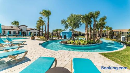Stay at this stunning 5BR/4BA house (sleeps 10) in the exclusive Windsor at Westside Resort! 💦 Enjoy your private screened pool (heat optional) after magical park days. Resort perks include a Gym, lazy river, tiki bar, and water park fun!⚡Free EV charger. 📍Prime Kissimmee Location ⭐12 Miles– Walt Disney World ⭐14 miles–Orlando Premium Outlets ⭐20 miles – Universal Studios, SeaWorld, Epic Universe 🎢 ⭐ 35 min – MCO Airport ✈️ ⭐ Publix, Seven Eleven within a minute drive ⭐In house restaurant